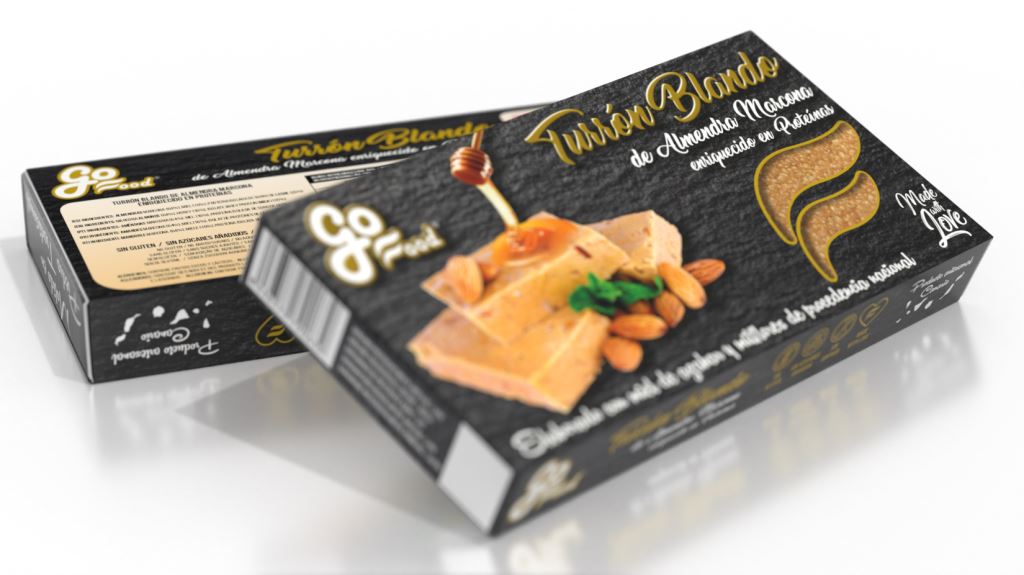 Turrón Blando de GoFood® es un delicioso turrón blando tradicional elaborado con almendras marconas y miel de azahar y milflores de procedencia nacional que está enriquecido con proteína de aislado de suero de leche.