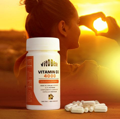 Vitamin D3 4000 de Vitobest es un suplemento en cápsulas que contiene 4000 UI (100 µg) de vitamina D3 por cápsula y contribuye al funcionamiento normal de los músculos y el sistema inmunitario, y al proceso de división celular.
