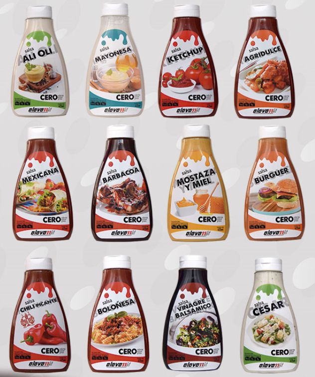 Las salsas de Elevenfit están disponibles en 12 sabores diferentes. Encontrarás sabores para carne como barbacoa, mayonesa, kebab o ketchup, sabores para la pasta como boloñesa o césar o incluso sabores especiales como burger, alioli o mexicana.