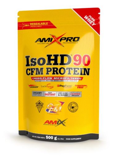 IsoHD® 90 CFM Protein de Amix™ Advanced Nutrition es una proteína con un 90% de pureza que contiene CFM® Whey Protein de Glanbia Nutritionals, considerada por muchos como el mejor aislado de suero del mundo, debido a su gran pureza, excelente aminograma y máxima biodisponibilidad, con uno de los valores biológicos más altos que existen.