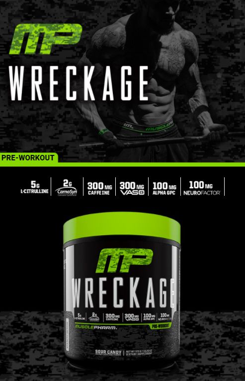 Directions For Wreckage Pre Workout Powder: For advanced users, mix one serving (1 scoop) of MusclePharm Wreckage™ in 8-12 fl. oz. of cold water and consume 20-30 minutes before training. For first time or inexperienced users, begin with a half serving (½ scoop) to assess tolerance. Do not exceed one serving per day. Use as part of a healthy diet and exercise program.