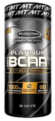 Platinum 100% BCAA 8:1:1 de la marca Nº1 en todo el mundo Muscletech® es un suplemento en tabletas que contiene una potente fórmula de aminoácidos de cadena ramificada con una proporción de BCAAs de 8:1:1 (leucina, isoleucina, valina).