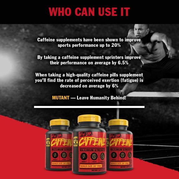 Mutant Caffeine de Mutant® es un suplemento en tabletas que te proporciona 200 mg de cafeína anhidra por dosis de 1 tableta.