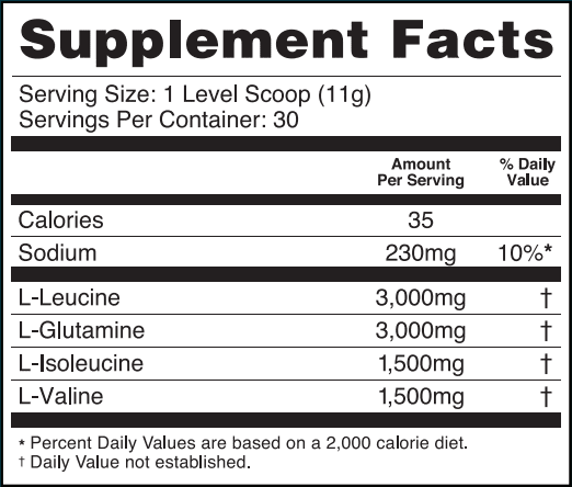 - Combina combina 6 g de BCAAs en una relación 2:1:1 con 3 g de glutamina.