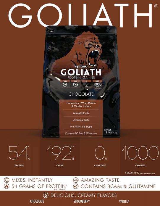 Syntrax® has engineered a product that causes other gainers to tremble in the shadows . . . a true Goliath® amongst the ordinary.