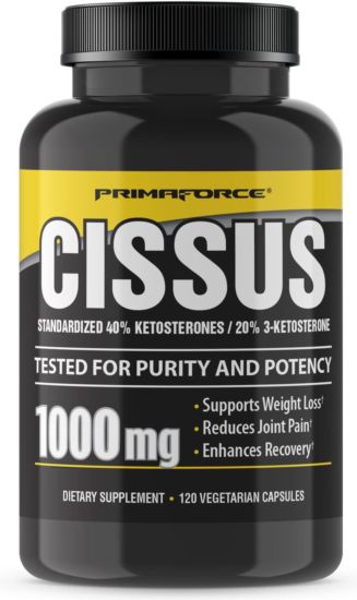 Cissus de PrimaForce es un suplemento en cápsulas que proporciona 1.000 mg por servicio de 2 cápsulas de extracto de cissus quadrangularis (estandarizado para un 40% de ketosterona y un 20% de 3-ketosterona).