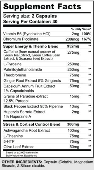 Explosive Energy† – from natural sources such as Green Tea Extract, Green Coffee Bean Extract Guarana Seed Extract, and Yerba Mate Extract