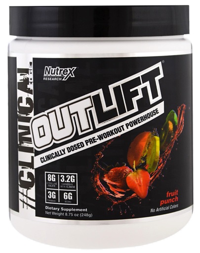 OutLift™ de Nutrex Research es un nuevo y completo pre-entreno todo en uno clínicamente dosificado diseñado específicamente para mejorar la fuerza y el tamaño muscular.