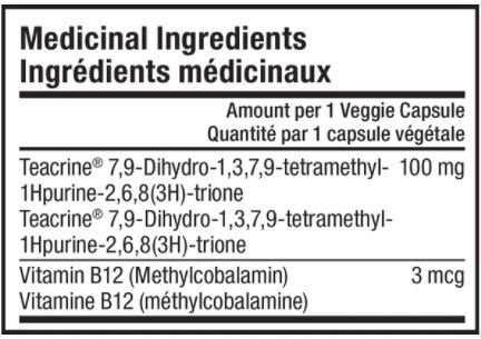 - Proporciona 100 mg de Teacrine® por dosis de 1 cápsula.