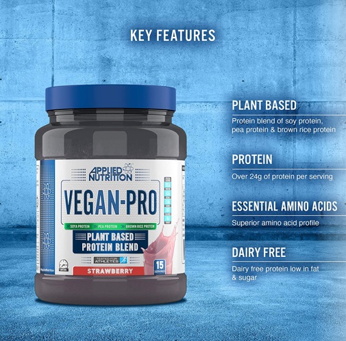 Vegan-Pro de Applied Nutrition es un suplemento en polvo que contiene una proteína vegana de primera calidad que combina a la perfección aislado de proteína de soja, aislado de proteína de guisante y proteína de arroz integral para ofrecer una gama completa de aminoácidos esenciales y más de 24 gramos de proteína por servicio.
