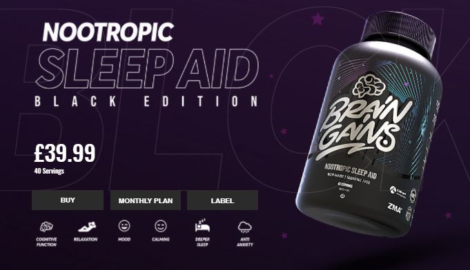 Nootropic Sleep Aid Black Edition de Brain Gains es un suplemento en cápsulas que contiene una fórmula única diseñada especialmente para ayudarte a recargar y reparar tu cuerpo mientras duermes como preparación para que al día siguiente tu cerebro y tu cuerpo tengan la total garantía de que funcionarán óptimamente.