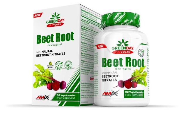 GreenDay® Beet Root de Amix es un suplemento en cápsulas que proporciona 1.500 mg de extracto de remolacha con un 10% de nitratos, los cuales se convierten en nuestro organismo en óxido nítrico, un vasodilatador que abre y desbloquea los vasos sanguíneos, aumentando el flujo de sangre, mejorando el rendimiento y normalizando el nivel de presión arterial.