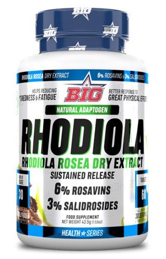 Rhodiola de Big es un suplemento en tabletas que proporciona 300 mg de extracto de raíz de Rhodiola (Rhodiola rosea L. (Sedum roseum (L.) Scop.) por dosis de 2 tabletas, con un contenido estandarizado de Rosavinas al 6% y de Salidrósidos del 3%.