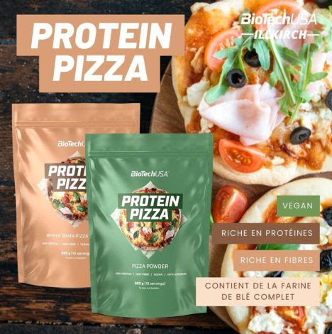 Protein Pizza de BioTech USA es un preparado en polvo para realizar una masa de pizza rica en proteínas y fibra saludable.