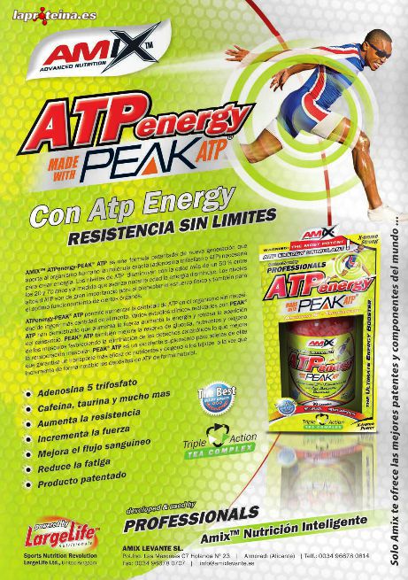 ATP Energy-Peak ATP® de Amix™ Nutrition es un suplemento nutricional que contiene Peak ATP®, una fórmula patentada de nueva generación que aporta al organismo humano la molécula exacta (Adenosina 5 - Trifosfato Disódico o ATP) necesaria para la producción de la energía.