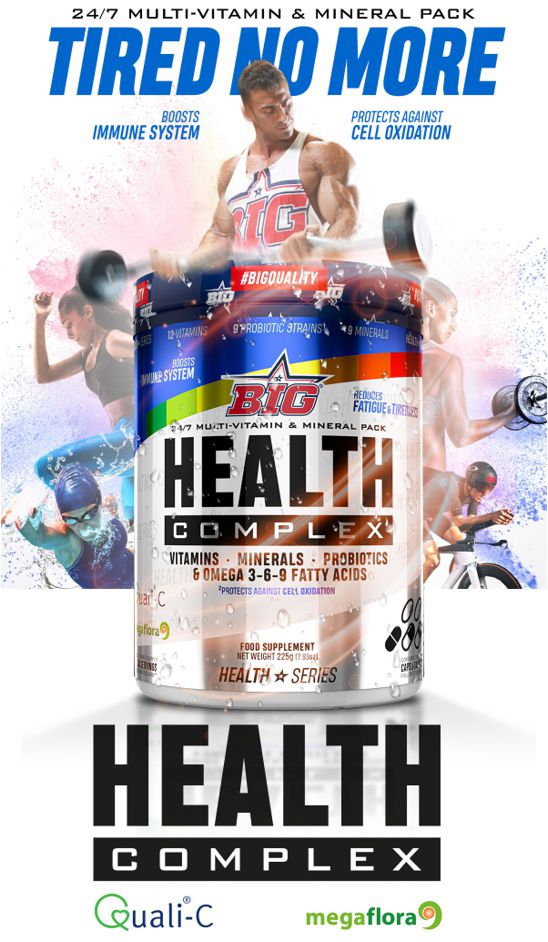 Health Complex de la gama BIGscience es un nuevo complejo multi-vitamínico y mineral que contiene una combinación de 12 vitaminas y 9 minerales a los que se han añadido un aporte de ácidos grasos saludables omega 3-6-9 y un complejo de probióticos basados en la patente Megaflora® 9Evo, además de un aporte extraordinario de vitamina C basado en la prestigiosa patente Quali-C® y una dosis de ácido linoléico conjugado (CLA).