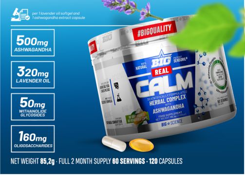 Real Calm de la gama BIGscience es un suplemento en perlas que contiene una novedosa formulación destinada a combatir los efectos del estrés y los estados de ansiedad.
