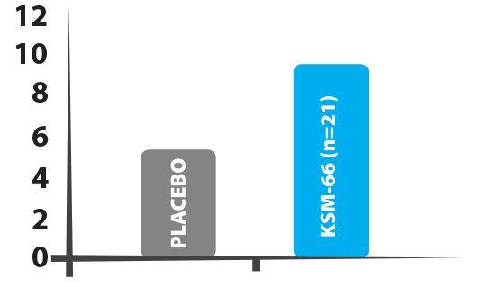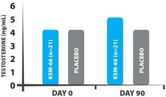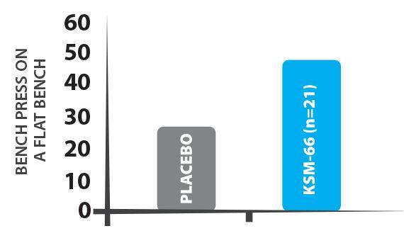 La eficacia de KSM-66 en este aspecto se estudió en un ensayo controlado con placebo doble ciego aleatorizado cuyos participantes fueron 50 hombres jóvenes que entrenaban de forma regular con ejercicios de fuerza (Wankhede Sachin, Effects of Ashwagandha Root Extract (Withania somnifera) on Muscle Strength, Size and Recovery, Testosterone, and Body Fat in Healthy Adults, Sports Medicine and Doctors Fitness Zone, Pune India). Se dividieron en dos grupos. El primer grupo (n = 25) tomo un placebo, mientras que el otro grupo (n = 25) tomó 300 mg de KSM-66 dos veces al día durante ocho semanas.