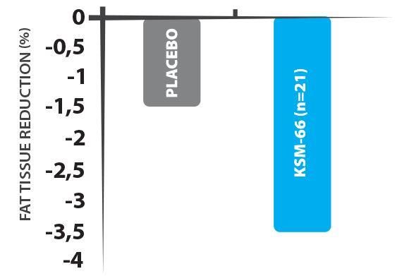 Figura 5. Reducción del porcentaje de grasa en el grupo placebo y en el grupo que tomaba KSM-66 en la octava semana del ensayo.