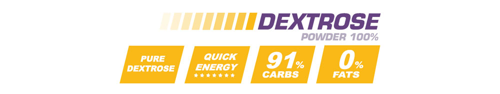 La dextrosa es una gran fuente energética de absorción inmediata que se puede utilizar como un carbohidrato recuperador del glucógeno muscular y como un potenciador de la insulina. Es un suplemento muy utilizado para optimizar el transporte de la creatina.