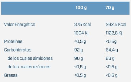 * 1 servicio (70 gramos) de Vitargo equivale a la misma cantidad de carbohidratos existentes en un plato grande de pasta cocida (300 gramos). En realidad puede llegar a equivaler hasta a 500 gramos de pasta cocida dependiendo del contenido de carbohidratos de cada pasta.