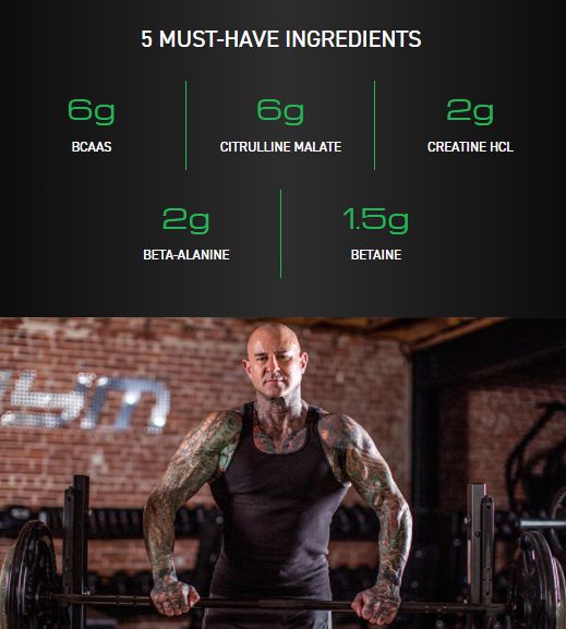 - BCAAs, citrulline malate, caffeine, taurine and beta vulgaris to enhance endurance.