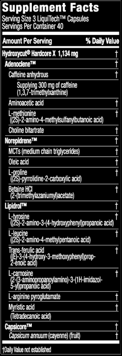 Cuando se desarrolló la fórmula de Hydroxycut® Hardcore X, el equipo de MuscleTech incluyó poderosos ingredientes reseñados en diversas investigaciones científicas para acelerar el metabolismo e incrementar la producción de energía.