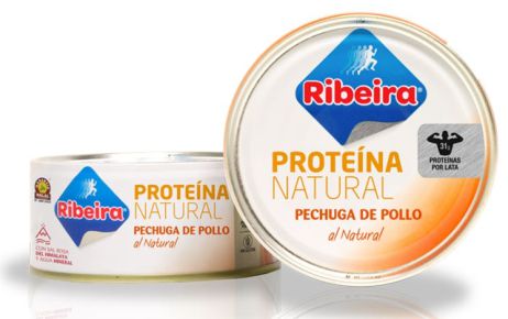 La Pechuga de Pollo al Natural de Ribeira tiene un exclusivo sistema de enlatado en crudo que le proporciona un alto contenido en proteínas superior a cualquier otra pechuga de pollo en conserva convencional, además de no contener nada de aceite al estar en agua, pero manteniendo el excelente sabor de la pechuga de pollo.