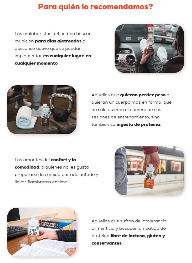 Sabor a fresa: agua potable, concentrado de proteína de leche en polvo 9,4%, aromas, emulgente: lecitinas, sal, edulcorante (sucralosa), colorante (carmines), estabilizante (carragenanos), corrector de la acidez (fosfatos de sodio).