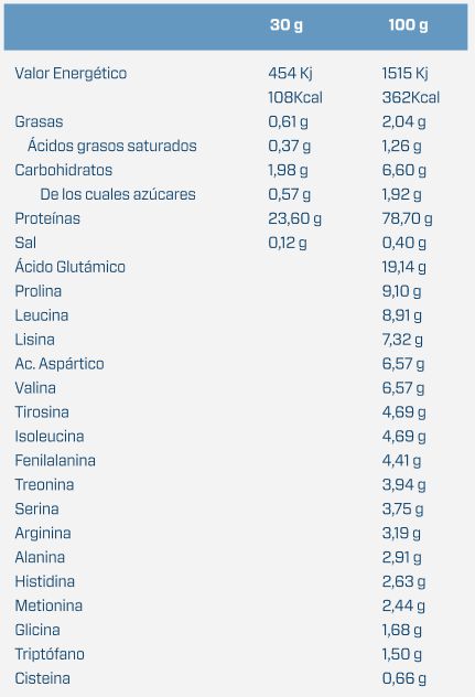 - Con un mínimo aporte de grasas y carbohidratos: Además de proporcionarnos una muy buena cantidad de proteínas, es reducida en grasas e hidratos de carbono, de manera que es un fiel aliado para personas que lleven una dieta de control de peso o aquellas personas que necesiten cubrir sus necesidades de proteína diarias sin alterar en gran medida el porcentaje calórico de su dieta.