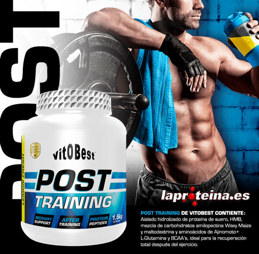 Post Training de VitOBest es un suplemento en polvo que contiene una combinación de aislado hidrolizado de proteína de suero de un 14% de hidrólisis, amilopectina, maltodextrina, L-glutamina, BCAAs y HMB que ha sido diseñada específicamente para favorecer los procesos de recuperación después del entrenamiento.