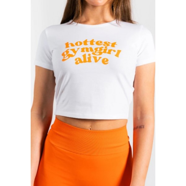 Camiseta de manga corta confeccionada con algodón suave y cómodo, una opción ideal para el uso diario. Dale un toque moderno a tu día y que todos se enteren que eres la "Hottest gymgirl alive". No quedarán dudas de ello.