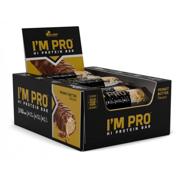I´m PRO Hi Protein Bar de Olimp Sport Nutrition son unas deliciosas barritas de 40 gramos altas en proteínas, y ricas en fibra dietética y lo mejor de todo, muy bajas en azúcares que puedes encontrar en dos riquísimas versiones con sabor a Yummy Cookies y Peanut Butter.
