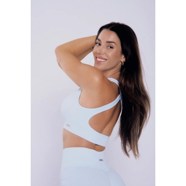 Conoce nuestro sujetador deportivo Mar Top Baby Blue, de escote redondeado y espalda cruzada para una mayor amplitud de movimiento. La técnica del tejido seamless (sin costuras) recrea un efecto “doble piel” y enmarca el pecho con total seguridad, sin necesidad de incómodos tirantes que dejan marca.