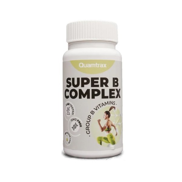 Super B Complex de Quamtrax Nutrition es un suplemento en cápsulas vegetales a base de vitaminas del grupo B, colina e inositol para maximizar tu bienestar diario.