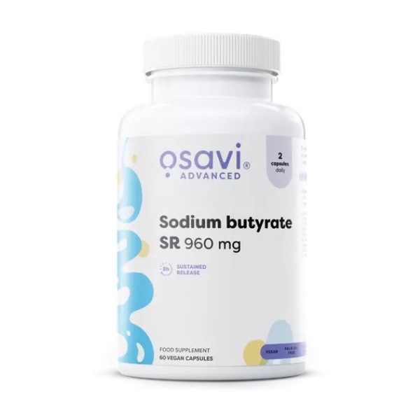 Sodium Butyrate SR de Osavi es un suplemento en cápsulas vegetales que proporciona 960 mg de de butirato de sodio en forma de microcápsulas de liberación prolongada.