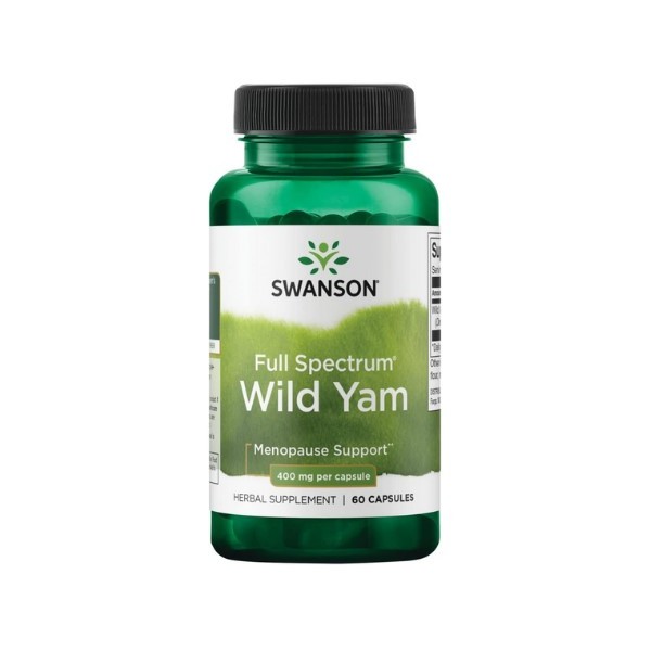 Full Spectrum Wild Yam de Swanson es un suplemento en cápsulas que proporciona 400 mg de raíz de ñame silvestre de espectro completo por cápsula.