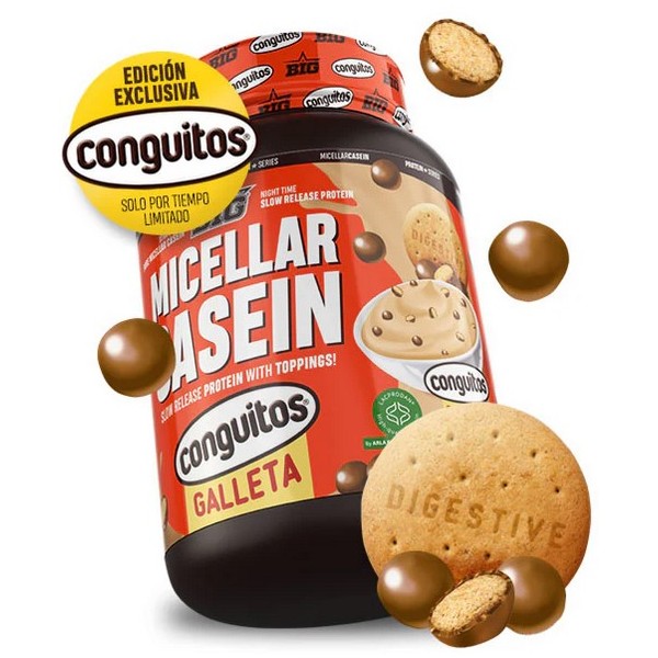 Micellar Casein Conguitos Galleta de Big es una caseína micelar de la más alta calidad hecha a base de Lacprodan® de Arla® Foods Ingredients, elaborada a partir de suero lácteo fresco y nutricionalmente equilibrado.