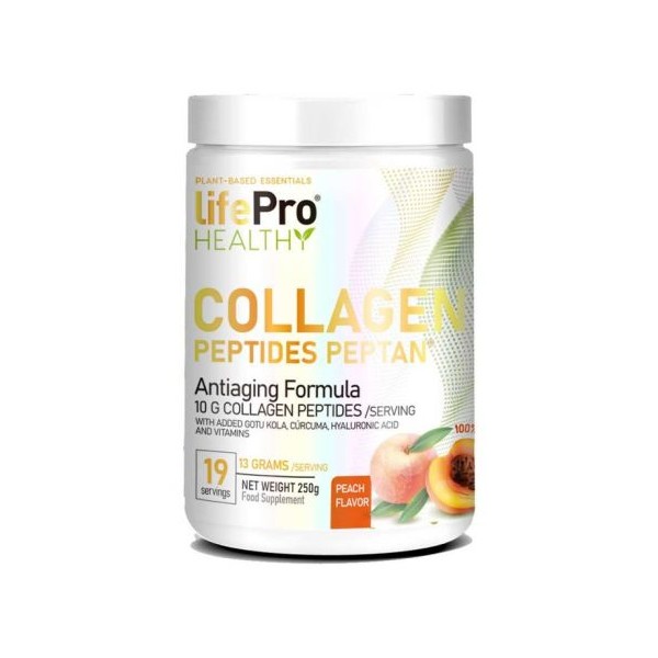 Collagen Peptides Peptan de LifePro Nutrition es un suplemento en polvo que contiene colágeno hidrolizado Peptan®, lo que nos asegura una máxima calidad y pureza, que además está enriquecido con extracto seco de Gotu kola, cúrcuma Longa Cursol®, ácido hialurónico, vitamina C y vitamina E.