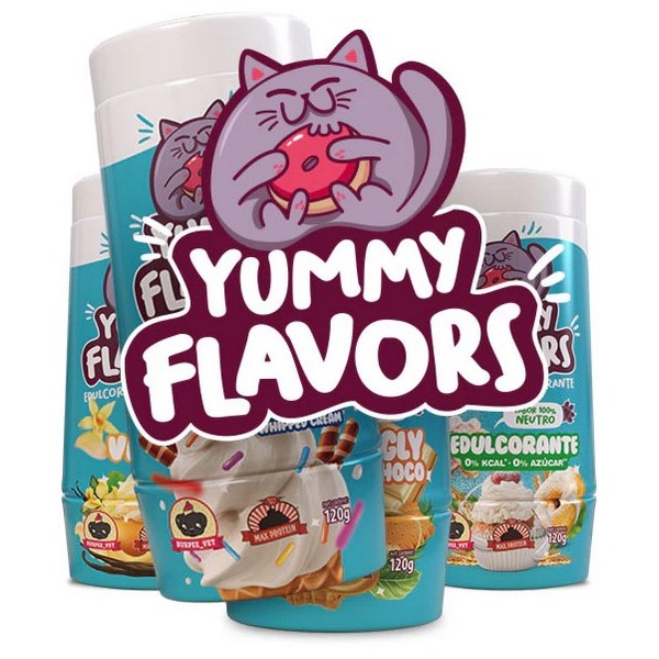 Los nuevos edulcorantes en polvo Yummy Flavors® tienen el SELLO DE APROBACIÓN de la conocida instagramer BURPEE_VET y se presentan en un llamativo envase de 120g y en una variedad de 4 riquísimos sabores para endulzar cualquier receta que te apetezca: ¡Mowgly White Choco, Vainilla, Nata y Edulcorante Neutro!