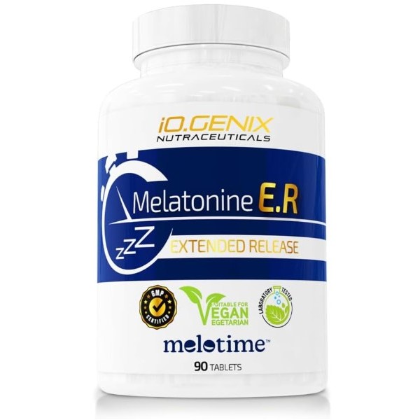 Melatonine E.R de IO.Genix es un suplemento en tabletas que contiene Melotime, una melatonina especial de liberación prolongada que se libera de forma sistemática durante 8 horas, alcanzando su pico máximo en las dos primeras horas y posteriormente liberándose de forma progresiva y controlada hasta el despertar natural de la persona.