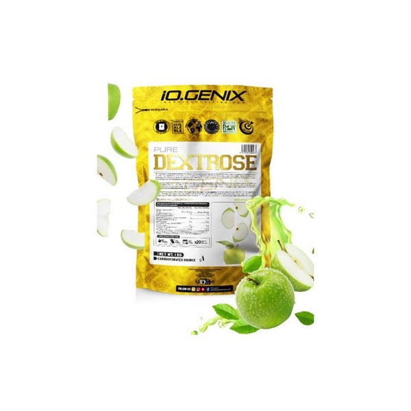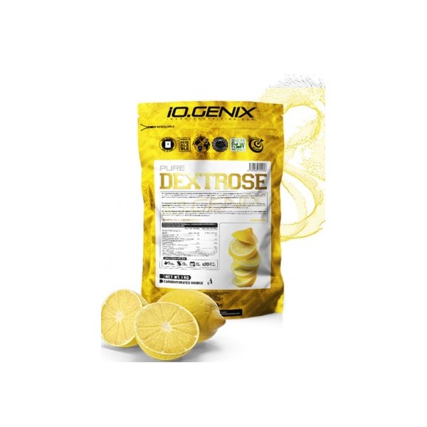 Dextrose de IO.Genix es un suplemento en polvo que contiene dextrosa en polvo con un refrescante sabor a limón o manzana.