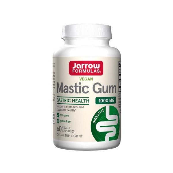 Mastic Gum de Jarrow Formulas es un suplemento en cápsulas vegetales a base resina de lentisco que funciona como protector estomacal, ayudando con la función normal del intestino delgado y el estómago.