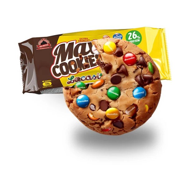 Max Cookies Lacasitos® forma parte de la familia de snacks proteicos de Max Protein®, que también incluye las galletas Max Cookies originales y las deliciosas galletas Blackmax y Blackmax TotalChoc recubiertas de delicioso chocolate blanco o chocolate con leche, que harán las delicias de los más golosos, sin sacrificios ni arrepentimientos, ya que también un alto porcentaje de proteínas y un bajo contenido en azúcares.
