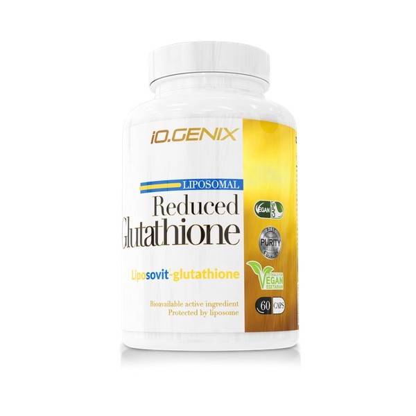 Reduced Glutathione Liposomal de iO.Genix es un suplemento en cápsulas vegetales a base de glutatión en su forma reducida, encapsulado en una matriz liposomal para mejorar su estabilidad y biodisponibilidad.