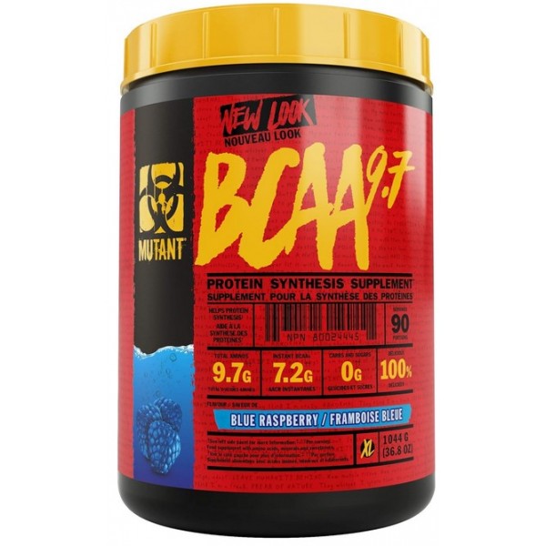 Mutant BCAA 9.7 de Mutant® es una fórmula en polvo a base de aminoácidos solubles que proporciona 7.2 gramos de aminoácidos ramificados en polvo en una proporción 2:1:1 (leucina:isoleucina:valina) por dosis, además de 2.5 gramos de otros importantes aminoácidos micronizados (taurina, glicina, L-glutamina, L-arginina, L-tirosina).