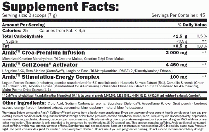 CellZoom™ de la marca nº1 en Europa Amix™ Nutrition, es un potente estimulador para antes del entrenamiento destinado a aquellos que quieren llevar su entrenamiento al siguiente nivel.