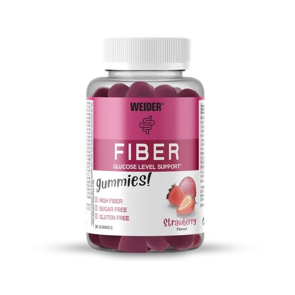 Fiber de Weider es un suplemento en forma de deliciosas gominolas con sabor a fresa que son ricas en fibra diseñado para ayudarte a mejorar la digestión, regular del azúcar en sangre y el mantenimiento de la salud intestinal.