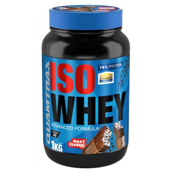 IsoWhey Maxy Classic de Quamtrax Nutrition es un suplemento proteico en polvo que contiene una mezcla de aislado y concentrado de suero de leche obtenido por microfiltración de flujo cruzado, un proceso por el que se consigue una proteína que mantiene un valor biológico muy alto, pero con unas bajas concentraciones de lactosa, grasa y carbohidratos.