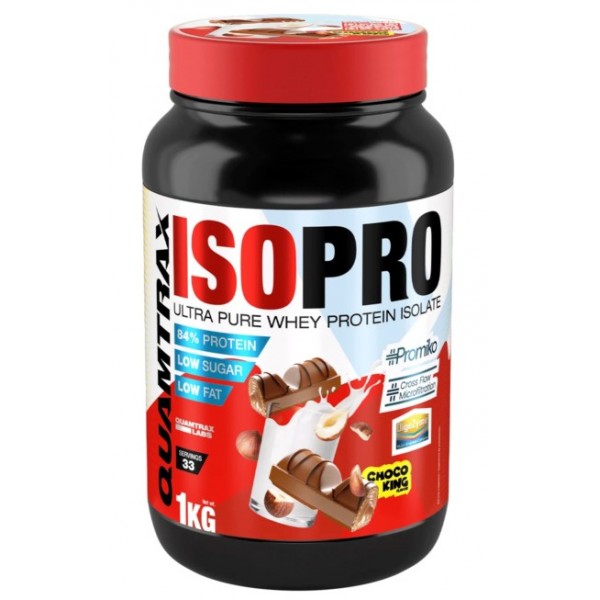 IsoPRO™ Choco King de Quamtrax Nutrition es un suplemento en polvo que contiene el 100% de aislado de proteína de suero de leche Promiko® de la más alta calidad enriquecido con el complejo multienzimático de DigeZyme®.